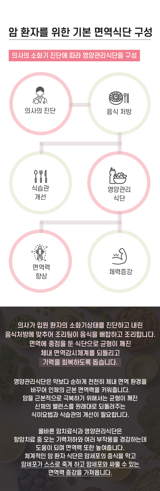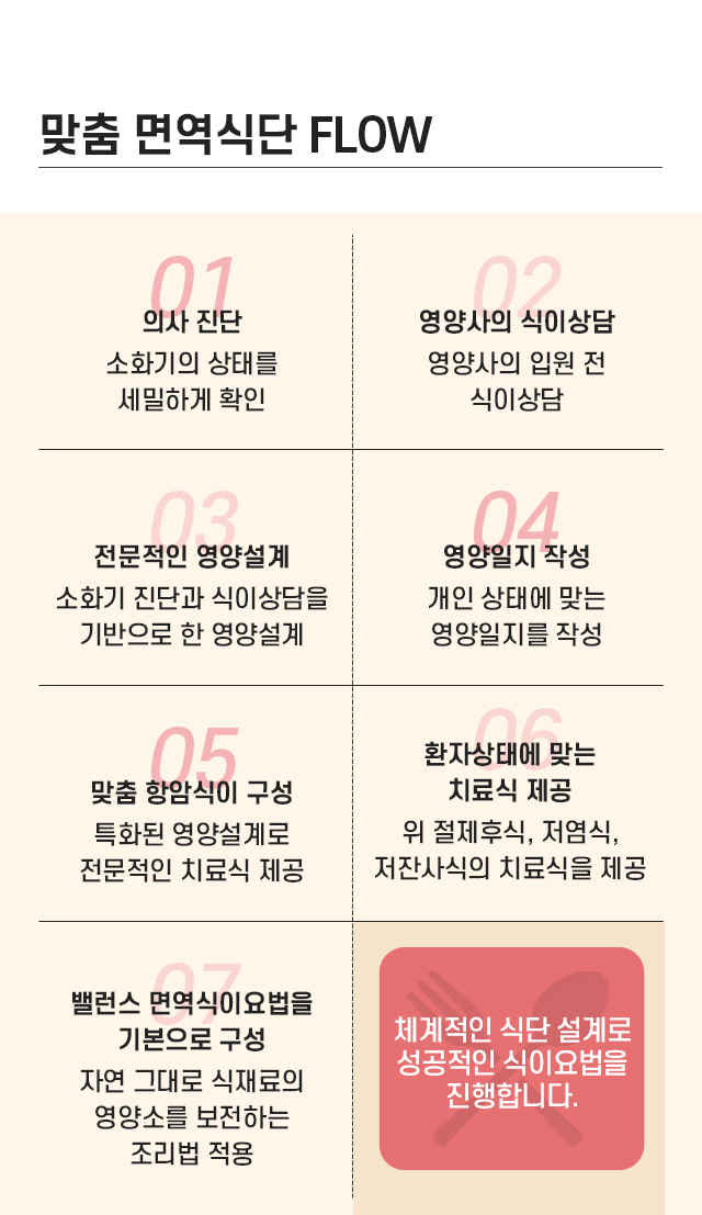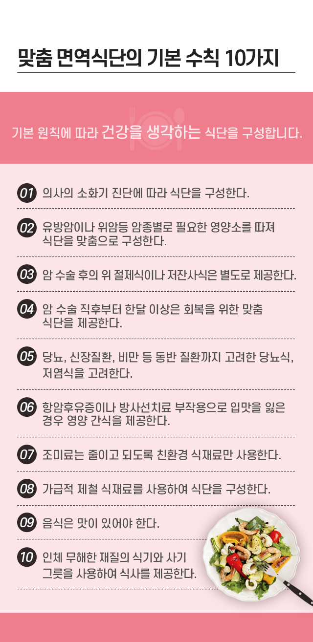 암 환자의 상태에 따라 제공되는 균형 잡힌 면역식단